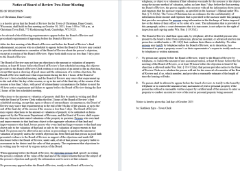 Notice of Board of Review Two-Hour Meeting October 30, 2025